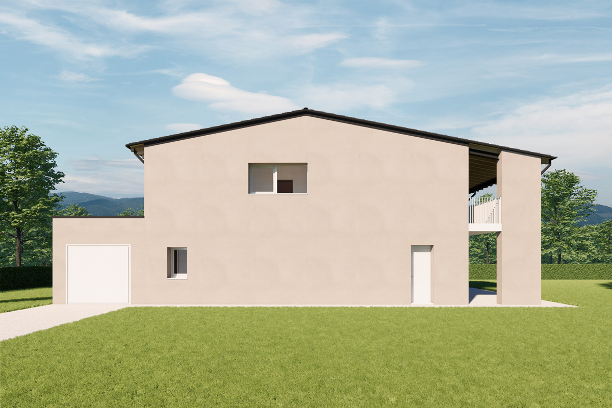 Questa casa monofamigliare si sviluppa su due piani, con una superficie totale di 164mq calpestabili. Caratterizzata da un tetto parallelo al lato lungo, offre un'architettura dal design pulito e minimalista, ideale per chi desidera uno stile di vita contemporaneo.