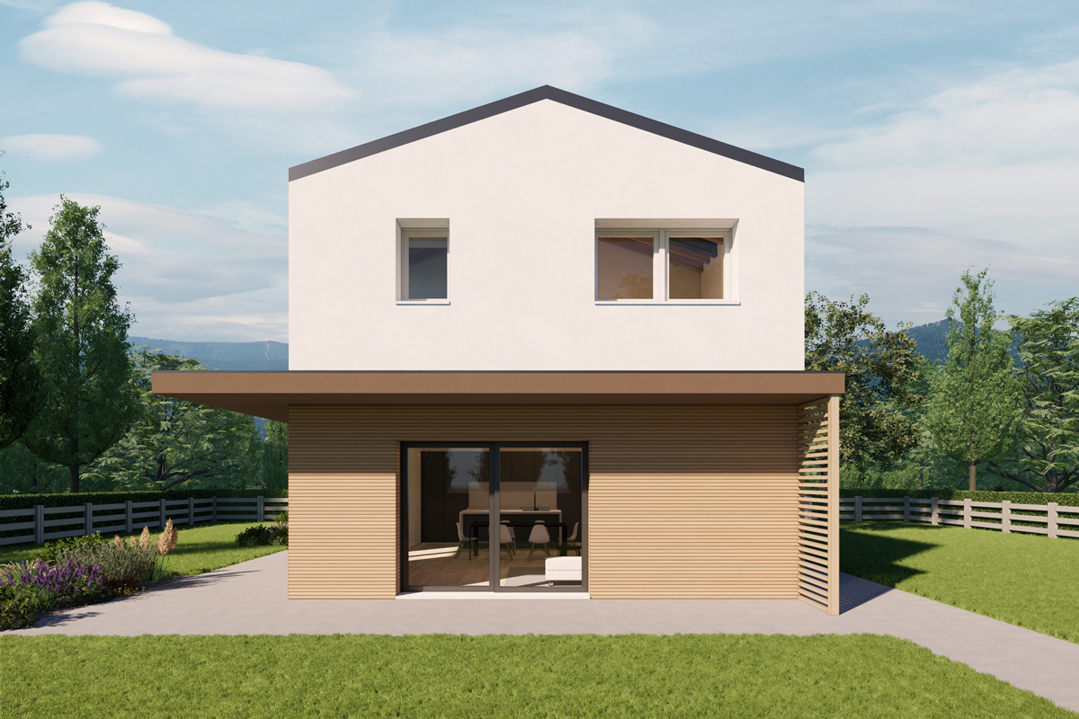 La tettoia di 23mq completa l'area esterna, mentre l'opzione di personalizzare il rivestimento esterno permette di creare un aspetto estetico grazioso e di design, curato dal cliente stesso.