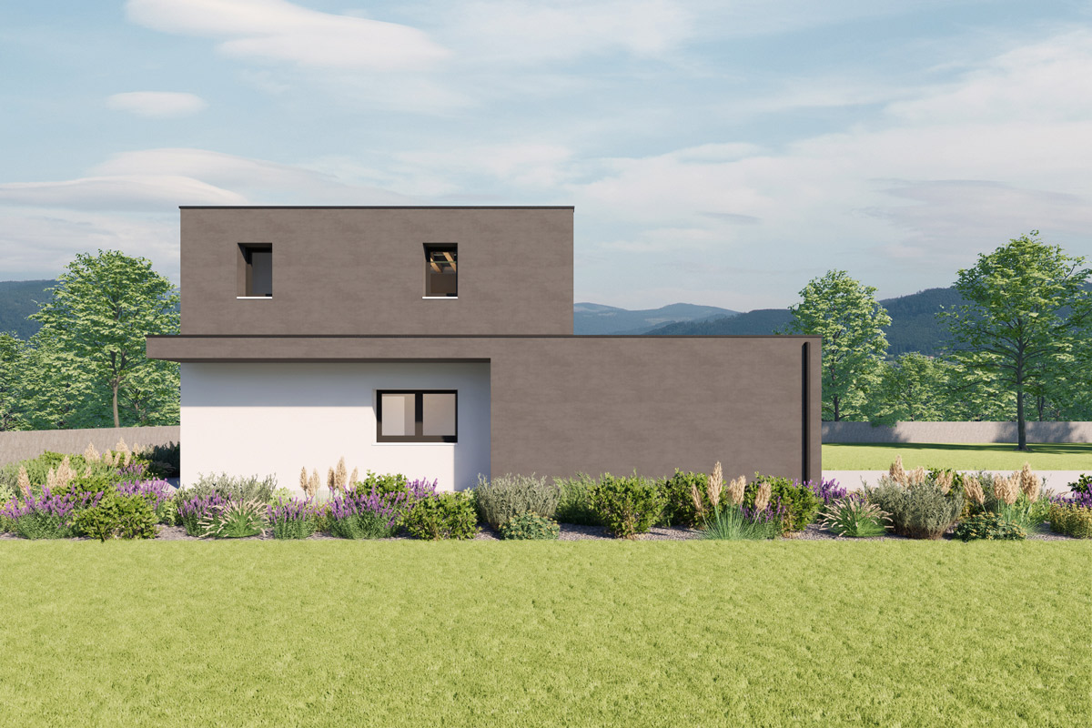 Questa casa moderna, con una metratura calpestabile di 164mq, presenta un design unico e contemporaneo. Caratterizzata da due volumi che si intersecano, crea un aspetto distintivo e di design.